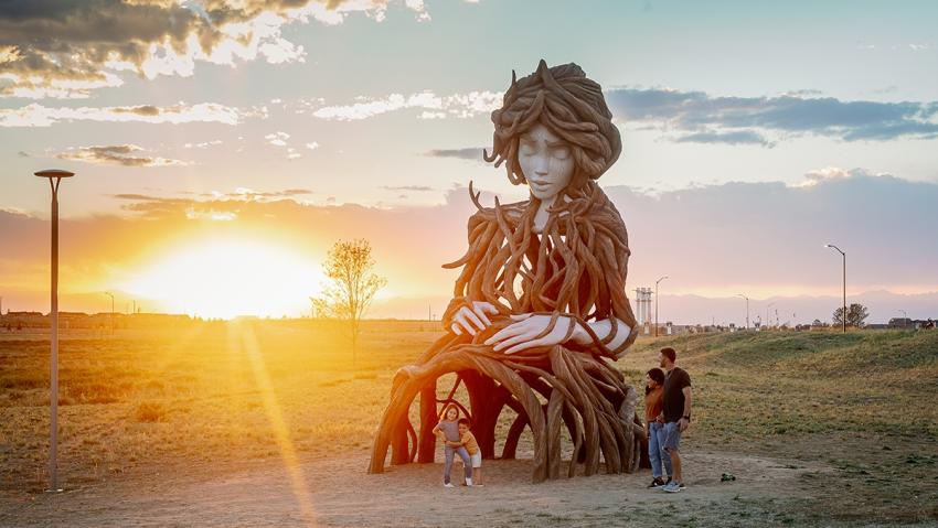 If you have some time during a layover in Denver and want to stretch your legs or are looking to explore more of Aurora’s hidden gems, be sure to check out the Art in the Park series along Hogan Park at Highlands Creek. With the locals’ inside scoop, you can discover even more captivating art installations, murals, and unique spots throughout the area. Check out Daniel Popper's towering 21-foot art installation. Representing "Gaia," the Earth goddess, Umi symbolizes the harmonious blend of woman and tree. This striking piece is the newest addition to Aurora’s vibrant arts and culture scene. Dive into the inspiration behind Umi's design, and be sure to visit her at Aurora Highlands! Don’t miss out on uncovering additional treasures by visiting The Aurora Highlands in the airport district!