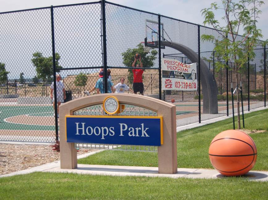 The 1.2-acre Hoops Park features three high school regulation size, day-use basketball courts, drinking fountain, seating for spectators, restroom, and parking lot.